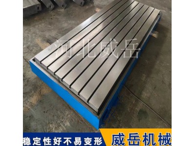 铸铁T型槽平台近年来在来工业上的用处越来越广泛的原因是铸铁平台外表硬度高,运用便利,不容易发生变形而且运用年份很长,代替了本来查验产品的硬度高,易磨损变形的。铸铁平台的铸铁质量和热处理质量对平台运用性能发生较大影响:或因残存较大内应力使作业面变形;或因不耐磨损使精度不能保持;或因刮削困难得不到数值小的粗糙度。因而运用铸铁平台留意铸铁资料的挑选,选用时效处理等办法消除铸铁平台的剩余应力。铸铁T型槽平台的使用寿命取决于如何正确使用铸铁平板的方法以及它的日常维护。